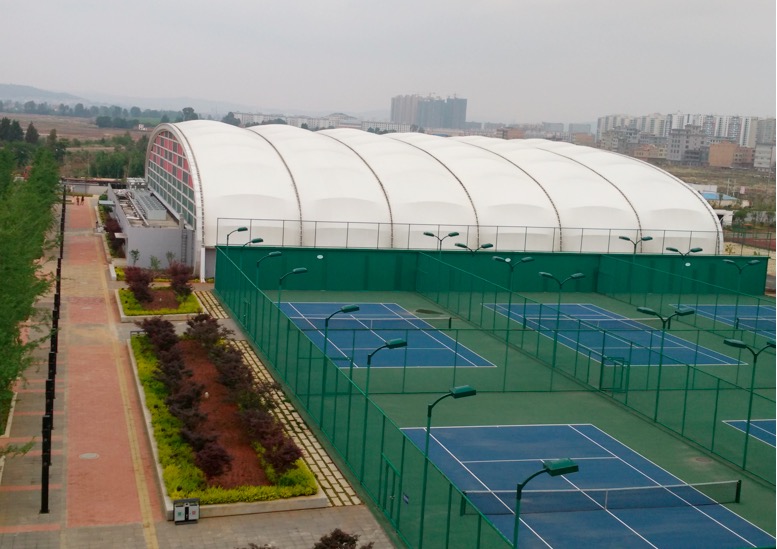 PVDF膜材具有柔軟度高不易發(fā)生破裂、性價比高、制作周期短、施工速度快的優(yōu)點。近年來經(jīng)過工藝及材料的不斷改進其耐侯性及防污性得到進一步提高,自潔性高的PVDF膜材的耐用年限可達15年以上,該材料目前是國內(nèi)使用量最大的膜材。