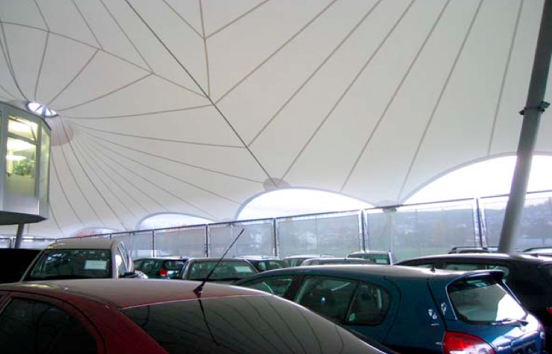 用于建筑膜結(jié)構(gòu)的膜材,依涂層材不同大致可分為PVDF膜與PTFE膜,膜材的正確選定應(yīng)考慮其建筑的規(guī)模大小、用途、形式,使用年限及預(yù)算等綜合因素后決定。