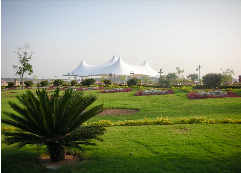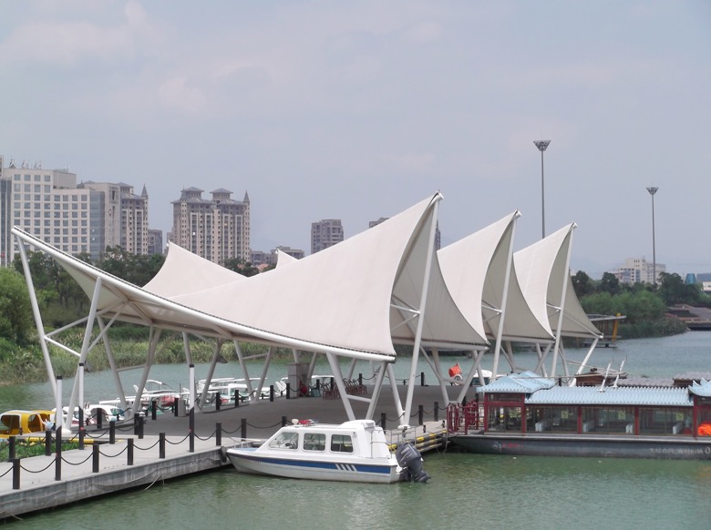 防污性:因涂層材料為聚四氟乙烯樹脂,表面摩擦系數(shù)低,所以不易被污染,耐用年限可達20年以上。與PVDF膜材比較造價高、制作安裝周期相對長,目前應(yīng)用于對價格不敏感的國家投資項目。
